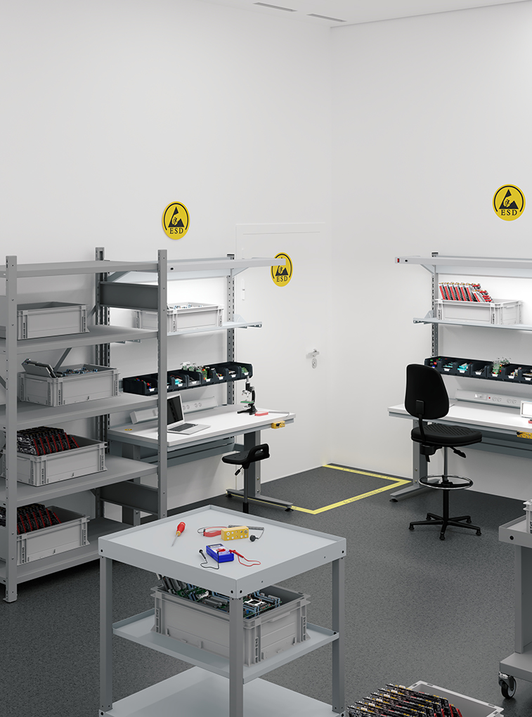 Les établis SI antistatiques ESD de SOFAME sont spécialement conçus pour offrir une protection optimale contre les décharges électrostatiques dans les environnements de travail sensibles. Idéaux pour le montage, la réparation et la maintenance de composants électroniques, ces établis sont équipés de surfaces antistatiques de haute qualité, garantissant la sécurité de vos équipements. Grâce à leur conception robuste et à leur conformité aux normes ESD, ils réduisent les risques de dommages liés aux décharges électrostatiques, tout en assurant un environnement de travail efficace et sécurisé. Choisir les établis SI antistatiques ESD SOFAME, c'est opter pour la fiabilité, la performance et la sécurité de vos installations.