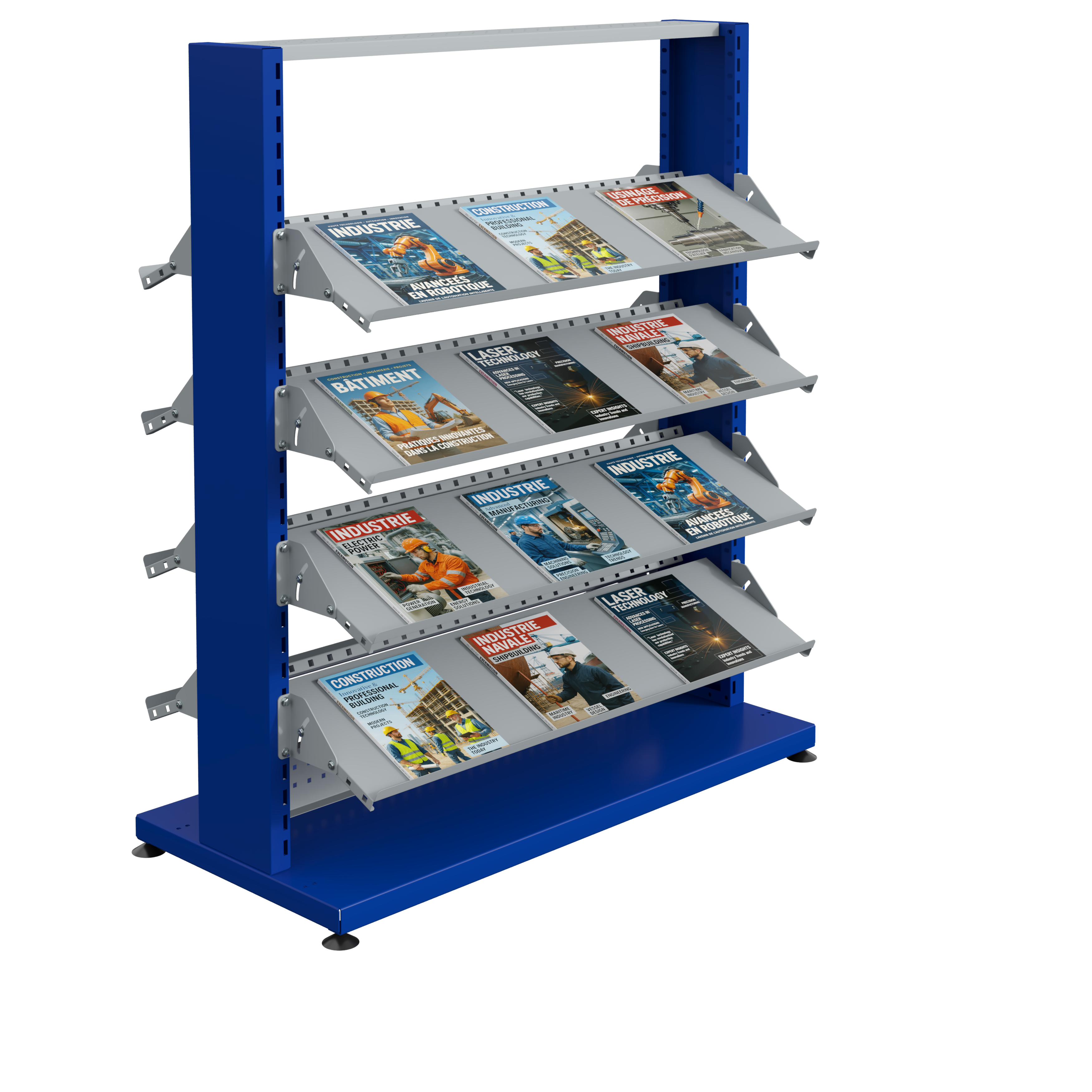 Les présentoirs COM sont conçus pour offrir une solution de rangement et d’exposition à la fois solide, durable et modulable. Leur structure en acier de haute qualité garantit une excellente résistance pour un usage professionnel intensif.